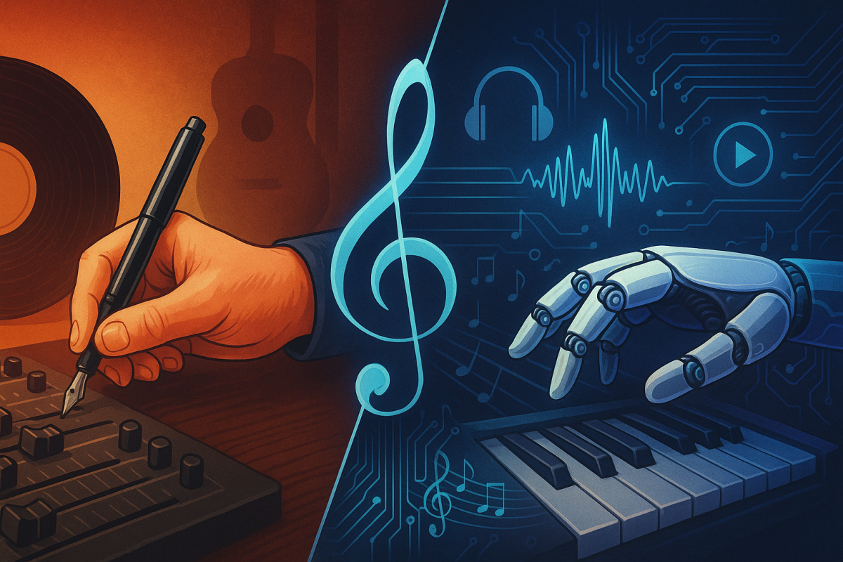 OpenAI. (2025, October 3). AI-generated cover image of human–AI music creation [AI-generated image]. ChatGPT. https://chat.openai.com/