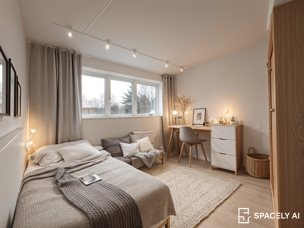 I used Spacely AI, a GenAI-powered interior design software, to redecorate the room. This platform not only allows small changes in the design but also complete makeovers. Particularly, the full transformation offers several options to choose from, such as color palette, style, lighting, and the AI’s creativity level. In my case, I decided on a natural color palette, Scandinavian Hygge-inspired style, and a balanced creativity level (Spacely AI, 2025).